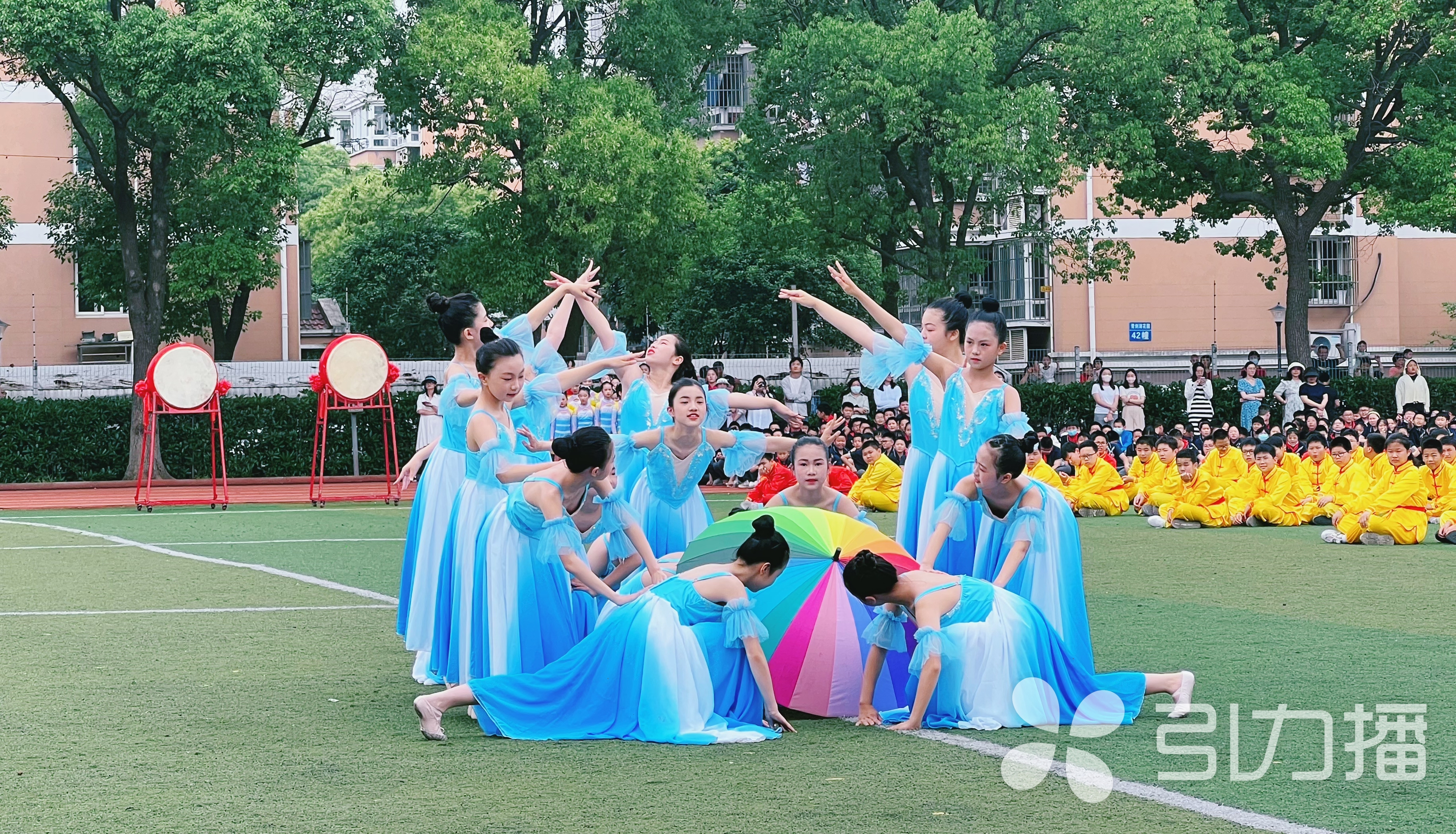 现场,精彩表演一一呈现。学校获奖舞蹈展演《风雨后》尽显美丽诗意;气势宏大的武术旗、节奏明快的啦啦操体现了跨小娃积极进取的阳光状态;鼓声阵阵催人进,师生传承暖人心,跨小师生用独特的方式表达对传统文化的敬意与继承。